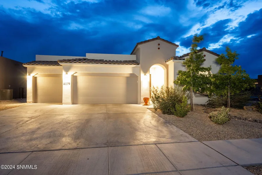 Welcome to your dream home in Red Hawk Villas! This stunning property, set on a desirable corner lot, offers the perfect blend of luxury and comfort. With 4 spacious bedrooms, or 3 with a dedicated office, and 2.5 baths, this home is designed for both relaxation and functionality. The modern Spanish exterior and tile flooring throughout set the stage for an elegant lifestyle. The living room boasts beautiful wood beams, creating a warm and inviting atmosphere, while the gourmet kitchen is a chef's delight. The primary suite is located at the rear of the home, providing a secluded retreat with a luxurious bathroom featuring double sinks, a garden tub, a pebble stone shower, and a large closet.Enjoy the convenience of a 3-car garage, a tankless water heater, and a Kenetico water softener system. The laundry room includes a utility sink for added functionality.