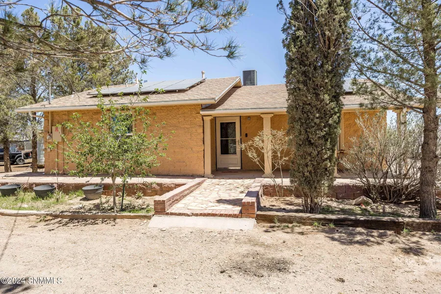 Horse property! Welcome to this charming property nestled in Mesquite, NM, where tranquility meets functionality. This delightful home boasts a cozy yet spacious layout with 2 bedrooms and 2 bathrooms. Situated on a generous 1.5-acre parcel of land, this property offers ample space for various activities and pursuits. A detached shop awaits, complete with a heated/cooled flex room spanning 300 sq ft, providing a versatile space for hobbies or work endeavors. Additionally, covered hay/equipment storage adds convenience for outdoor enthusiasts or hobby farmers. For those with equine or livestock interests, this property is a dream come true. Four horse/livestock pens are at your disposal, along with recently planted pastures, perfect for turning out horses for a leisurely graze. Underground water rights and a well ensure reliable access to water. Embracing eco-friendly living, solar panels adorn the property, contributing to energy efficiency and sustainability.