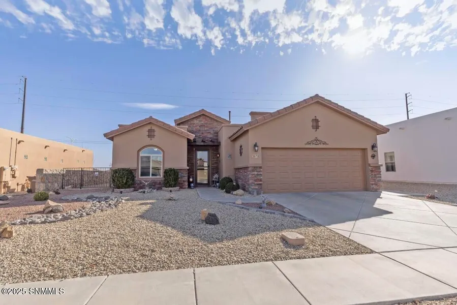 Welcome to your dream home nestled in the heart of Las Cruces! This newly listed residence offers a spectacular blend of luxury, space, and breathtaking mountain views that are sure to captivate. Boasting three large bedrooms, including a spacious primary bedroom, and two pristine bathrooms, and a large flex space with multiple use options, this home is perfect for relaxation and personal retreats. Encompassing 2272 square feet of beautifully appointed interior, the residence also features an 18-foot-wide garage door to accommodate all your vehicular needs and an expansive driveway. In addition, the fully finished garage has built in overhead storage, utility sink and epoxy flooring. The 11-foot ceilings in the living room add a grandiose feel, enhancing the open and airy atmosphere, complemented by custom features that radiate modern charm. Step outside to a generous 14x21 covered patio...