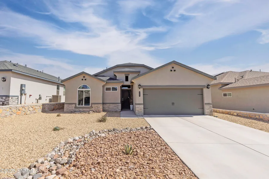 Welcome home to this stunning, like-new gem built in 2022! Offering 1,772 sq ft of thoughtfully designed living space, this move-in ready home features 3 bedrooms, 2 bathrooms, and a spacious open-concept layout. The heart of the home is a beautifully appointed kitchen with quartz countertops, stainless steel appliances, a center island, and plenty of cabinet space. Enjoy a split bedroom floor plan for added privacy, with ceramic tile flooring in the main areas and cozy carpet in the bedrooms. Outside you will find a low-maintenance backyard featuring a covered patio and pergola.The oversized 2-car garage includes additional flex space, great for a workshop, gym, or extra storage. Lightly lived in and meticulously maintained, this home is truly turnkey! Located in the Rincon Hills area with a park and basketball court. Close to shopping, restaurants, highways, and more!