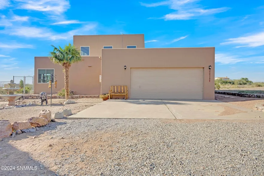 This stunning custom-built home sits on over 2.5 acres with breathtaking views of Las Cruces. The 2,628 sq ft main house offers 4 bedrooms, 3 baths, and an open-concept design that floods the space with natural light. The spacious kitchen is perfect for entertaining, while the master suite provides a serene retreat. High ceilings and elegant finishes, including natural wood tongue and groove, enhance its charm. A 1,087 sq ft detached casita features a master bedroom, home office, 1.5 baths, and a cozy living area with a Kiva fireplace. Currently rented for $1,200/month, it's a great income opportunity. The property also includes a two-stall, two-story barn and boasts recent upgrades like both new air conditioning units, Septic tank, roofing, a Brand-new heat pump that runs off of Solar, Culligan Water Softener and a reverse Osmosis Drinking water. New Stove, New Dishwasher, and Anderson ...