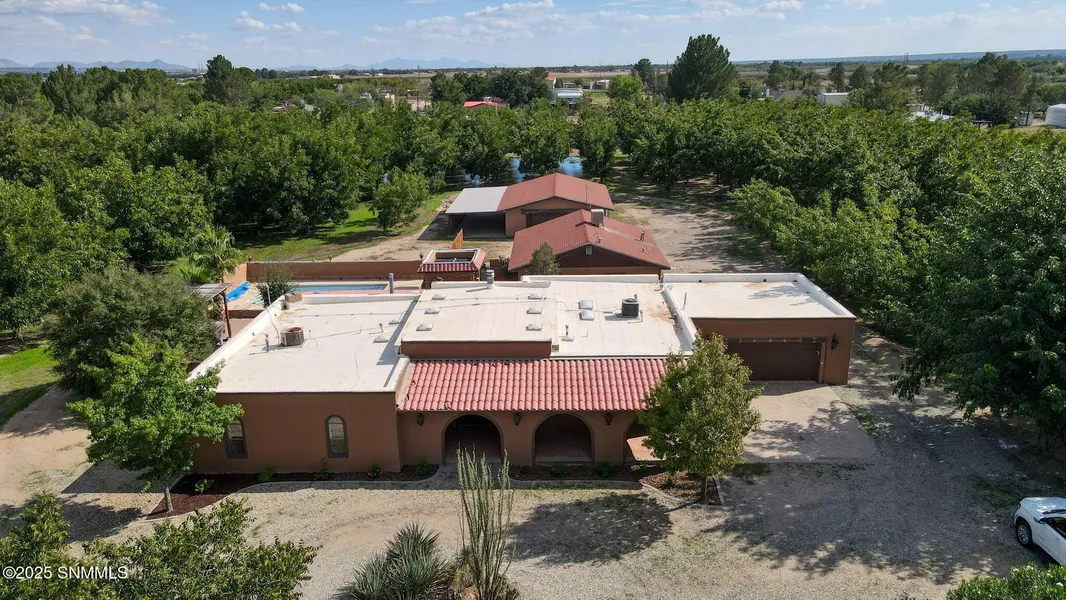 Looking for a small farm? This secluded 3.97-acre property in the North Valley is surrounded by hundreds of mature pecan trees and located close to the Rio Grande River. It includes a 2,829 sq. ft. main home, a 1,073 sq. ft. casita, a 1,362 sq. ft. workshop, and a large solar-heated swimming pool. Built from stabilized adobe for added durability, offers two wood-burning fireplaces, a wood stove in the sunroom, and two HVAC units. The casita features evaporative cooling, perfect for guests or extended family. The backyard is ideal for entertaining with a covered pergola, open patio, and hot tub. The large workshop provides space for vehicles or hobbies. Property includes EBID water rights, an 8' well, and plenty of room for horses, animals, or RV parking. Enjoy peace, privacy, and the beauty of nature in this exceptional North Valley retreat. Make it your home today!