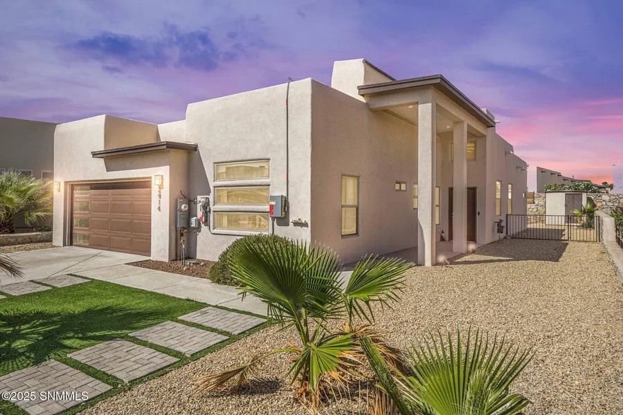 Welcome home to this adorable, well-kept, 4 bedroom, 2.5 bathroom home with an east facing, landscaped backyard with a SHED! This SOLAR powered home is nestled in a cul-de-sac with NO HOA. Contemporary living with over 2,000 square feet! Sizeable living area with trayed ceilings & ample in-ceiling lighting. Inviting open floor plan with a gorgeous kitchen featuring granite countertops, farmhouse sink, 5 burner gas range, stainless steel appliances, along with a modern flair to the lighting & fixtures. Primary suite is spacious with a luxurious bathroom including two separate vanity and sinks, large walk-in shower, and roomy closet. Front yard is xeriscaped with synthetic grass and plants. Don't miss out on this opportunity!