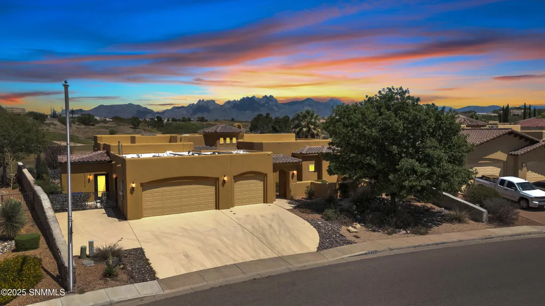**NEW CARPET** This Solar powered home has breathtaking views of the Organ mountains with an east facing backyard, Perfectly positioned right on the Sonoma Ranch golf course. This stunning 3,408 sq ft residence sits on .29 of an acre. This beautifully designed home features a spacious three-car garage, four generous bedrooms, and two and a half bathrooms, offering ample space for both everyday living and entertaining. The main bedroom provides endless space with a luxurious ensuite bath, featuring a relaxing garden tub and walk in shower and a large walk-in closet. The heart of the home is the Gourmet kitchen, with granite countertops, an island and all appliances included, and a built-in wine cabinet, perfect for hosting or enjoying quiet evenings at home. Just off the main living area, step into your very own movie theater room. Step outside and you'll find a backyard oasis unlike any other. With panoramic views of the golf course and those organ mountains!