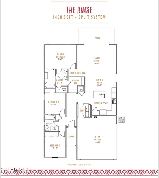 The Anise: This well-designed single-story home offers 1,450 sq ft of comfortable living space with 3 bedrooms and 2 bathrooms. The open-concept layout connects a spacious kitchen featuring granite countertops, modern lighting, a pot filler, and a farm-style apron sink to the dining and living areas for seamless flow. The primary suite includes a private bath and generous closet, while the secondary bedrooms are thoughtfully separated for added privacy. Includes a 2-car garage. Listing subject to errors, omissions, and changes without notice. The info provided is deemed reliable but not guaranteed. MLS photos are for marketing purposes only and may not reflect actual colors or upgrades. Please verify selections during design appointment.