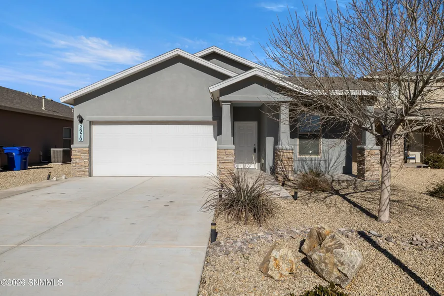 Welcome to this meticulously maintained 4-bedroom, 2.75-bath home in the Legends West community. The home features tile flooring throughout the main living areas and carpeted bedrooms for added comfort. The open-concept layout offers a split-bedroom floor plan, providing functionality. The kitchen is beautifully appointed with stainless steel appliances, granite countertops, and an island with breakfast bar, and it flows seamlessly into the main living spaces; ideal for everyday living and entertaining. Two of the bedrooms feature en-suite bathrooms, and granite countertops and matching white cabinetry are found throughout the entire home, creating a cohesive and upscale look. All bedrooms feature a ceiling fan. Both the front and backyard are fully landscaped, with the backyard showcasing artificial turf and a large pergola with shades, perfect for outdoor enjoyment. Additional highlights include a fully finished garage with epoxy flooring, built-in shelving and a 220V outlet for charging your EV.