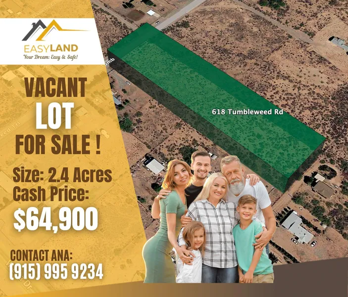 This property is a must-see! 2.4-acre residential lot in Chaparral only 27 minutes from El Paso, TX! Location, location, location: schools, restaurants, and other great amenities are nearby making it perfect for your family. Call us for more information! We offer this property at a discounted ROCK BOTTOM cash price so that one lucky buyer can own the perfect property at a BELOW MARKET price. This amazing vacant lot is yours for only $64,900 if you pay in full! We also offer this property with very affordable, no credit check seller financing. We love to work with buyers to help ensure the best deal that suits your budgeting needs. Call us NOW!
