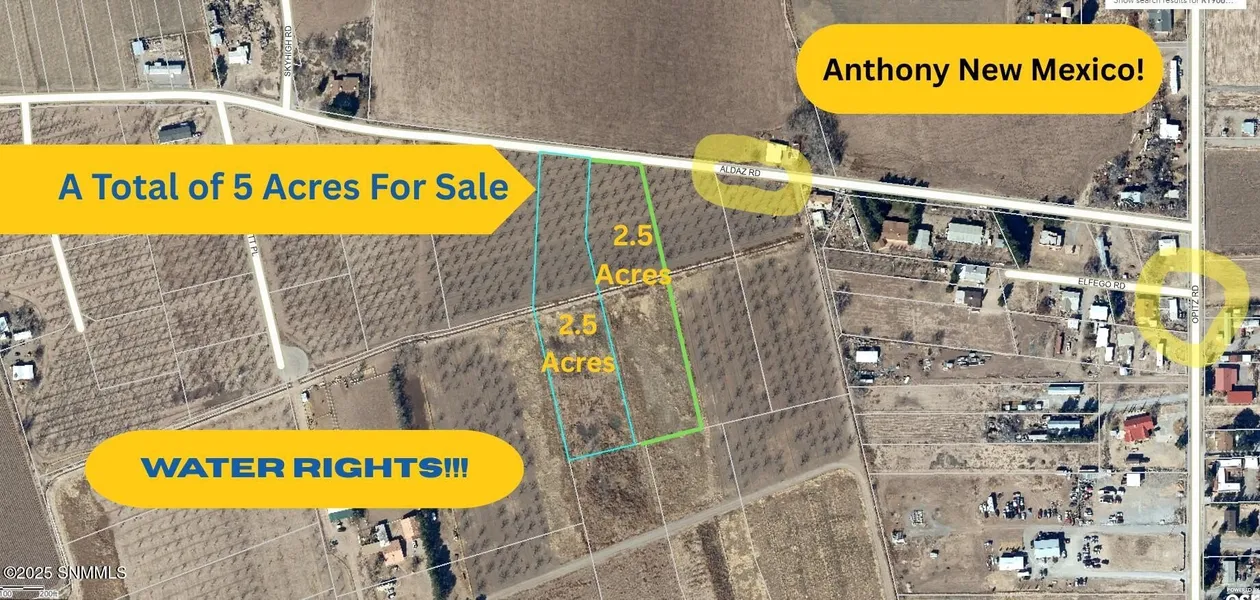 Prime 2.5-Acre Property with EBID Water Rights in Anthony, New Mexico- Option to Combine for a total of 5 Acres!Discover this exceptional opportunity to own a versatile parcel of land in the heart of Anthony's rich farmland. This 2.5-acre property offers the perfect setup for your Dream Home and/or farming all or part of the land, fearturing individual EBID Water Rights for optimal irrigation and agricultural use. Located on a paved road, the property boasts low property taxes and easy access. It includes appoximately one acre of pecan trees making it an ideal investment for orchard farming or other agricultural endeavors along with a home. An Adjacent 2.5-Acre parcel is available for purchase, allowing buyers to combine both properties for a total of 5 acres. This rare opportunity to acquire a prime piece of farmland with excellent water access and multiple use options. Do not miss our on this gem in Anthony, NM!