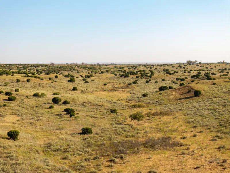 The topography of the ranch is varied, with much of the eastern portion being relatively open, flat grasslands. These grasslands were farmed at one time, but have since been placed in the CRP, and currently provide a dynamic stand of native grasses. Additionally, wild plum bushes, sage brush and mesquite trees are thinly scattered on the eastern side of the ranch.