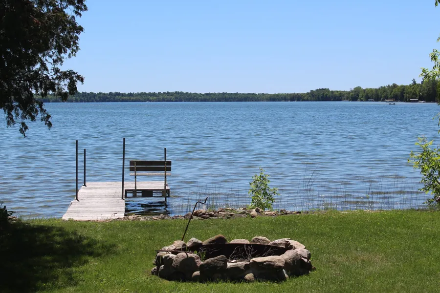 Unique setting on Kangaroo Lake. Wake up from the master & look down the entire lake from your bed! This waterfront parcel is 'the point' of Eggers Point with easterly & southerly views, nothing else like it! Historic original log cottages retain features like Door County stone floor & fireplace; yet completely restored & updated to include new electrical, plumbing, insulation, roof, hardwood floors & more! High-end appliances (Sub-Zero refrigerator, Wolf range), cabinetry, finishes, light fixtures & custom-made window treatments. Professional landscaping, perennial gardens & stone fire pit. Two cottages - one houses the living room, bedrooms & baths; the other houses the kitchen & dining, plus washer/dryer & pantry. Two piers included.