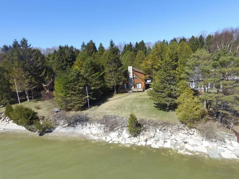 Charming log cabin on the shores of Lake Michigan in Door County. Great location near the end of Lower LaSalle Rd and walking distance from Lower LaSalle County Park. 100 feet of shoreline with tree lined lot, basketball court, and large lakeside deck. Enter through a screened porch, main floor bedroom with two very large bedrooms on the second level. Wood burning fireplace for those cool spring and fall nights. The living area is open with ample space for entertaining. Loads of privacy in a quiet neighborhood. TEXT 155425 to 35620 for more information.