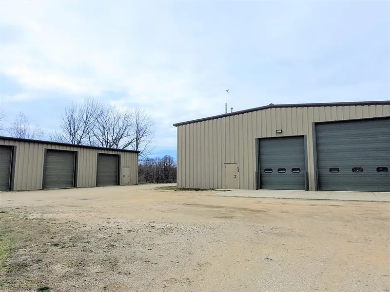 The ultimate man cave AND she-shed! This property is an outdoor sports enthusiast's dream come true. One of a kind industrial type building (6800 sq ft) with huge overhead doors, second floor storage, 1 ton crane, office, 1 bedroom apartment fully insulated and heated. The other storage building features 3 units each with extra storage, the last building includes an upstairs office area (unheated) and a bridge to the ultimate deer stand or getaway (another deer stand is located on the west parcel). Additional storage in shipping containers. Rolling farmland, woods, cliffs, small stream, and some distant views of the water. Great recreational or investment land. Property is an estate and being sold as-is, no condition report.
