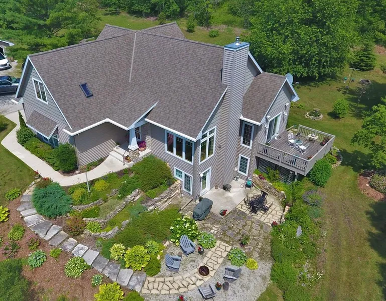 Amazing sunsets from this 2008 open concept-custom built home that's nestled on a hill. Just minutes from downtown Sturgeon Bay this home boasts a natural park-like setting w/2.53ac & is professionally landscaped. Big Prairie windows allow views of all the wild life surrounding the home. Cozy FP in living room w/heatilator that also heats the LL. Large windows & patio doors lead to deck w/lovely bush & floral views. Kitchen has 3 pantries & new SS appliances. Main level living w/master bedroom,bath & laundry on 1st level. LL family room walkout leads to patio w/firepit. Dual zoned heat, new Leaf Guard gutters, underground electric, 3yr furnace, 2 yr water heater 2020 water softener. Detached garage/workshop is insulated & heated.