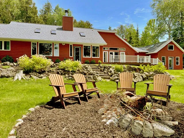 164' of beautiful waterfront property on Sawyer Harbor in Door County. Features quiet, solitude and sunsets while providing ample opportunity for boating fun. Open concept with split floor plan, wood cathedral ceiling, fireplace and patio doors leading to a spacious deck for entertaining. Master bedroom suite with patio doors to deck and windows that flood the room with light. Attached to the main home are guest quarters with a private entrance. The guest quarters include one bedroom*, kitchen*, bath*, loft and living room with exterior door to deck and water. Enjoy this quiet, peaceful and a protected harbor ideal for your Door County living. Furnishings, dock/lift, boat and jet ski available to purchase with home sale. TEXT 187984 to 35620 for more information.