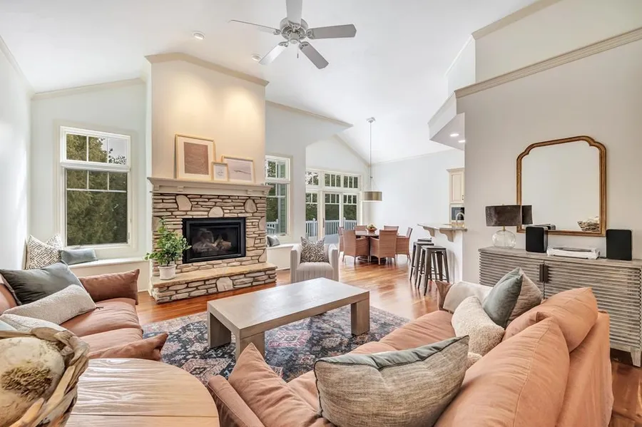 A true find! This amazing home features an open concept of living -- perfect for entertaining your friends and family and best of all, steps from downtown Fish Creek. This beautiful setting is tucked along a quiet, wooded enclave of homes outside the hustle and bustle. The perfect opportunity for year-round or second home living. Tall ceilings, crown moldings and tons of upgrades are showcased in this sophisticated home and walking distance to beach, shopping and restaurants. Gorgeous stone fireplace, dining area, updated kitchen, wet bar and transoms to showcase the stunning wooded backdrop. A lovely separation of living featuring a finished walkout lower level with family room, kitchenette, wet bar and patio.