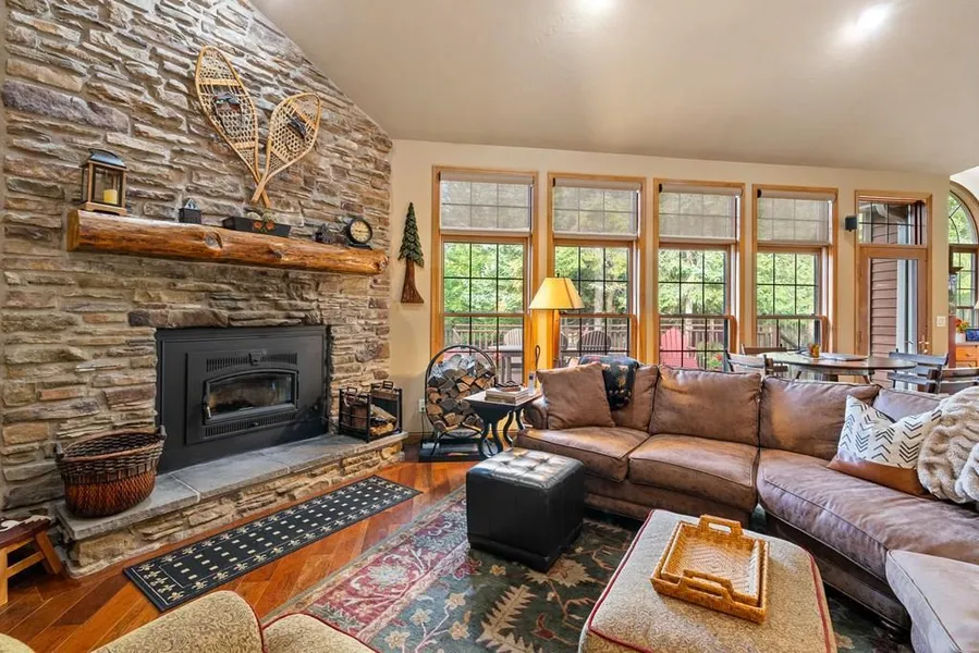 A stunning property with a fabulous home situated on 8.21 acres and steps from Clark Lake and Whitefish Dunes State Park. The home boasts a beautiful floor plan with vaulted ceilings, a chef's kitchen with gorgeous countertops and nearly new appliances, a grand great room with a fireplace, a formal dining room, first-floor office, and a first-floor master suite. The property also features rolling landscape, perennial gardens, a lovely backyard with a professional fire pit, and a west-facing deck for sunny days. Additionally, there's an oversized three-car garage and a partially finished full basement for storage and extra living spaces. The beautiful features of this home and property make this the perfect fit for the ideal Door County life