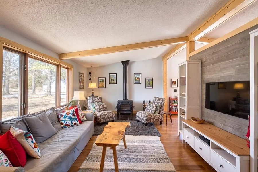 Discover the charm of this Scandinavian-inspired home, where timeless design meets modern comfort. Set on 39 peaceful acres, with some land use-value assessed, it offers the perfect blend of nature and coziness. Inside, enjoy a thoughtfully designed space with two bedrooms and one bath upstairs, plus a versatile basement office. Fully remodeled since 2019, the home embraces the hygge lifestyle. Gather around the cozy fireplace, the heart of the home. Outside, a historic barn, old milkshed, and four-car garage add character and possibilities. Mature crabapple trees, lilacs, and forsythia enhance the serene landscape. Property is being sold "as-is" & partially furnished. This rare retreat invites you to embrace Scandinavian-inspired living.