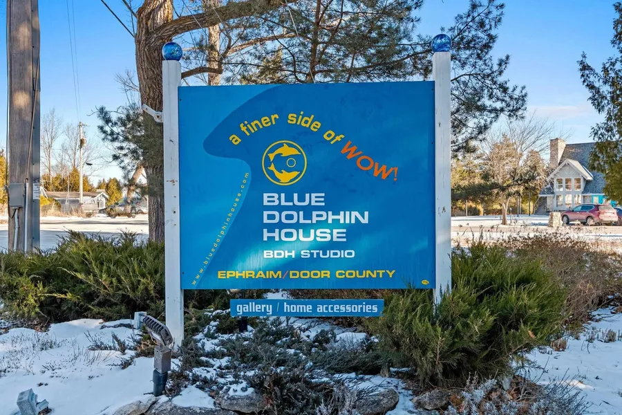 Here's a rare opportunity to own a versatile property with limitless potential! The Blue Dolphin House, nestled among towering pines on North Ephraim's Water St vibrant retail community, has been a beloved destination in Door County for 56 years. This nearly 4.5-acre property is located in a high traffic count location and includes the thriving business, real estate, and a beautifully restored house/retail space with outbuildings and art gallery. The second floor of the showroom offers potential living space (currently offices), and two warehouses provide storage. With the artist's studio, gazebo, and fenced cutting garden, this property offers endless possibilities. Some residential use is allowed. Here's the perfect canvas for your vision and a turn key business with history.