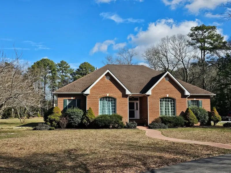This beautiful home in Indian Creek Estates Subdivision has 3 bedrooms, 3 bathrooms ( 2 full and one ) conveniently located on the main ground level. The offering includes an adjacent 20.96-acre wooded lot for 22.95 total acres. Hunt right where you live!Beautiful neighboring homes complete a wonderful setting with paved roads, mature trees, and spacious lots. The area is very pet-friendly, and the adjacent wooded parcel has endless possibilities for hunting, dog walks, or recreation. Homes in the neighborhood are each unique in style. A spacious, circular driveway and brick paver front sidewalk welcome you to the home. The home has rear patios, and the property features beautiful landscaping. A smaller fish pond and mature trees frame a very large yard. The home is well-designed, with brick details and a fully-bricked front porch. The bright front entrance has a leaded-glass front door ...
