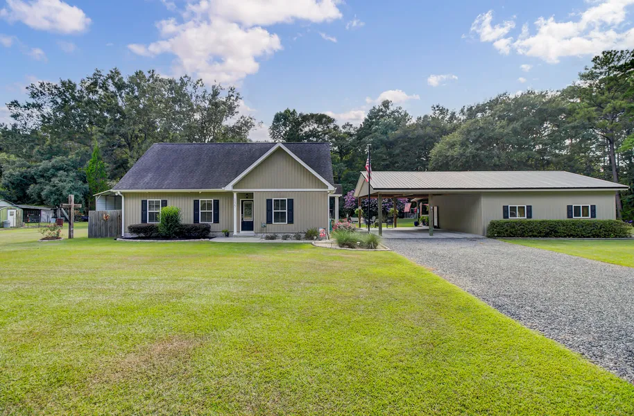 Welcome home to you own private oasis just outside of the Town of Summerville on 1.3 acres with no HOA in Dorchester District 2!!! This single story custom built home is a true gem featuring all the privacy and comfort you could ever need. Enjoy sitting on the two covered patios, or enjoy a quiet evening sitting around the fire pit. The options are endless for relaxation. Built in 2013 the home features an open floor plan with 2 bedrooms and 2 full baths. Upon entering the home, you will love the open living area featuring, Hickory wood flooring, vaulted ceiling and a Wood Burning Buck Stove in the family room for all those cold nights. Kitchen has 42 inch cabinetry, with crown molding, granite countertops, stainless steel appliances, gas range and hood.Just off of the family room is the master bedroom. The private master bath has a large tiled shower and plenty of storage. There is a secondary bedroom and a full private bathroom with a tub shower combo. There owners added a 30x30 garage with a attached 30x24 car port. Inside the garage there is a kitchen perfect for cooking and grilling on the outdoor covered patio. Garage also features tons of storage, and is perfect for a golf cart!! Property also features a 18x54 camper shed and covered boat parking and so much more!!