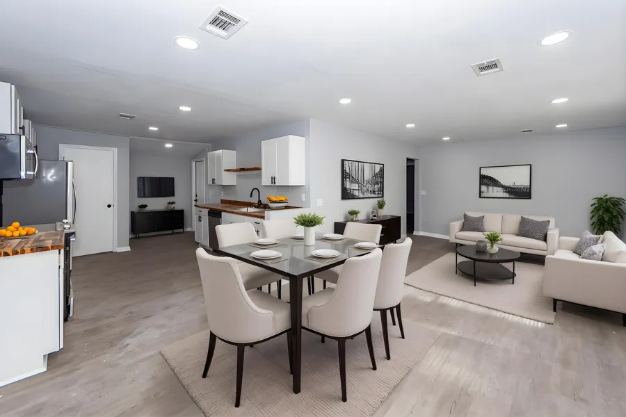 This beautifully updated single-family home in North Charleston sits on a desirable corner lot and has undergone extensive renovations to create modern features and refined living spaces. A roomy yard with several mature trees welcomes you as you arrive. Inside, the home offers a welcoming feel with a refreshed kitchen, updated fixtures, newly painted interiors, and sleek bathroom upgrades. The bright and open living and dining area is enhanced by large windows that fill the space with natural light. The kitchen features white shaker cabinets, stainless steel appliances, and a functional layout that makes meal preparation a breeze. With four bedrooms and two bathrooms, there is plenty of space for everyone to spread out and feel at home. Conveniently located just 1.7 miles from Bosch,3 miles from I-26, 4.7 miles from Joint Base Charleston, and 6.9 miles from Charleston International Airport, this home offers both comfort and convenience. Don't miss your chance to make it yours.