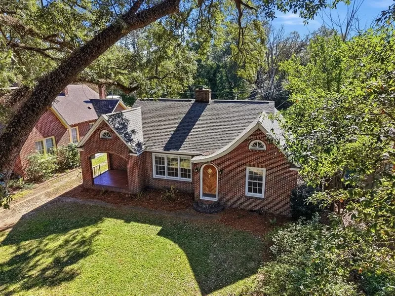 Beneath Albany's iconic canopy of trees, 908 Second Avenue stands as a classic Brick Cottage offering 1,428 square feet of preserved character and timeless architectural appeal. Its traditional brick exterior, cottage proportions, and rooflines reflect the craftsmanship of an earlier era, while a newer roof (less than two years old) and updated HVAC system provide modern peace of mind. Inside, original hardwood floors, arched doorways, detailed trim work, and large windows fill the home with abundant natural light. The living room is anchored by a charming fireplace with decorative hearth and mantle and opens through French doors into the formal dining room accented by a chandelier, creating an inviting flow for entertaining and everyday living. The kitchen features generous cabinetry, tiled countertops, a gas range with a double oven, and a bar overlooking the backyard ideal for seating or a coffee station. There is also space for a breakfast table, while a rear entrance leads to the raised deck, creating an easy connection between indoor and outdoor living. A second living space offers excellent flexibility and may be used as a family room, office, playroom, or media room. Bedrooms are spacious and well-proportioned with hardwood floors, ceiling fans, and ample closet storage, including mirrored sliding doors that enhance light and functionality. The home includes two bathrooms, one with classic black-and-white tile and pedestal sink, and a primary bath featuring a beautifully updated tiled walk-in shower with built-in bench seating. The home has been well cared for while also offering opportunity for cosmetic updates, allowing a new owner to personalize the space while preserving its original charm. A large laundry room doubles as a functional mudroom from the backyard entry, and a security system conveys with the property. Outside, the front porch provides space for bistro seating, while the deep fenced backyard offers privacy and versatility. A long driveway extends to a detached workshop or studio that is wired and insulated, ready for completion and ideal for hobbies, creative studio use, private office space, guest quarters, or even a rental for additional income! With solid brick construction, updated systems, central proximity to downtown Albany and Phoebe Putney Memorial Hospital, and strong flexibility for both personal use and investment- delivering lasting character and opportunity. [Seller is a relative to one of the listing agents]