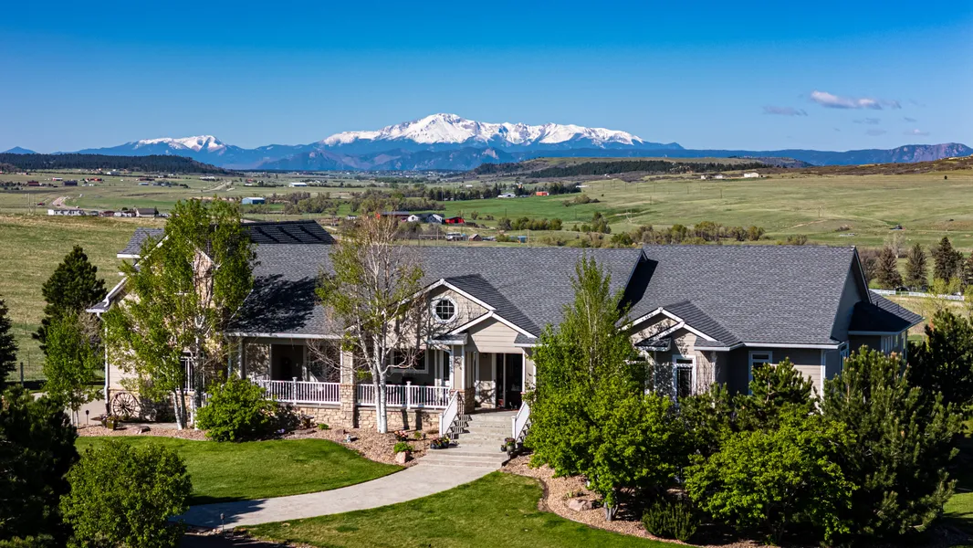 This stunning 7,000 sq ft executive home, set against breathtaking views of Pikes Peak and Mt. Evans, offers luxury and functionality on a grand scale. The exterior features durable rock and wood siding, new high end composite shingles, and a large front porch perfect for soaking in the scenery. A newly redone driveway leads to a 3-car garage with silent automatic openers and LED lighting.