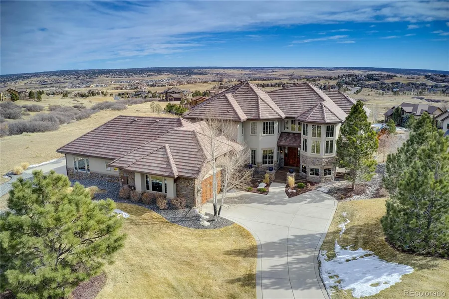 Grand views of the front range greet your guests through floor to ceiling windows framed in timeless custom millwork. Built with skilled craftsmanship, luxurious finishes, and gorgeous millwork throughout, this Pradera Golf Club home leaves little to be desired. Situated on a prime cul de sac 1.25 acre lot, this 5 bedroom, 5 bath home features soaring ceilings, intricate tile work, smart built-ins, walnut floors, 9-foot knotty alder doors and cabinetry throughout. A rare find in Pradera, the 8-car front to back garage opens to a beautifully landscaped backyard, grated to provide a level space for a pool and play area. Made to entertain inside and out, this home features a large eat-in chefs' kitchen with a grand island, Viking range, mosaic tumbled tile backsplash, custom hood and walk-in pantry. The kitchen flows through a spacious butler's pantry to formal dining or the oversized cover...