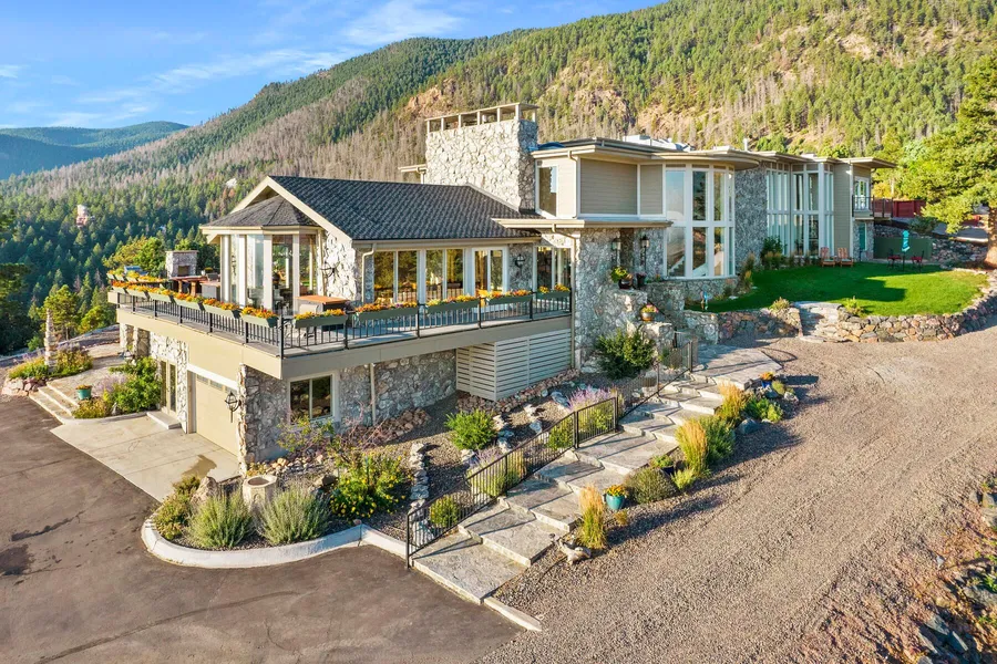 A mountain-side masterpiece, nestled in breathtaking Perry Park, Larkspur. The home enjoys panoramic views of the famous red rock formations, and backs to the Pike National Forest. Experience the private comfort of this estate with an outdoor entertainment deck comprised of a fireplace, swim spa, hot tub, and lounge area while overlooking the scenery. Timeless features of the home include a gourmet kitchen, wood beam ceilings, a classic curved staircase, large picture windows, and granite walls and fireplaces. This location provides easy access to both Colorado Springs and Denver. The exclusive Perry Park golf course is just a few minutes away, and backing to the Pike National Forest, this home accesses miles of hiking and biking trails.