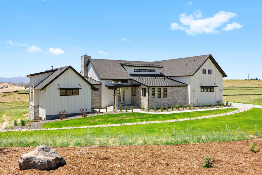 Located in Tallman Gulch, the up and coming luxury neighborhood at Parker, this home exudes modern, chic luxury. The estate has 6 en-suites, two viewing decks, and a newly completed stately in-ground, salt water pool for outdoor entertainment. Inside, vaulted ceilings, floor to ceiling windows, with motorized sun blocking shades, quartz countertops, and natural light create an elevated living space. The main floor living area flows from the kitchen, to the great room, office, and spacious Owner's Suite with a barn door separating the bedroom from its spa-like bathroom. The lower-lower level walk-out, has a spacious entertainment room featuring artful epoxy-coated concrete floors, stone walls, and opens to the pool and hot tub. The 2nd floor bonus room is fabulous, with an adjoining 3/4 bath, a walk out covered deck, and incredible views. This room has so many possibilities- guest suite, home office, exercise room, or media room. Storage space is effortlessly incorporated into the home design, with elements such as the walk in pantry, and a over-sized 3-car garage. State of the art AV wiring and equipment have been installed. Backyard is ready for the incorporation of your personal touch. This semi-custom home was built by Adamo Homes in 2021. Each aspect of the home is designed to flow into the next space, and individual elements highlight the estates modern luxury design. Move-in ready with elevated design and architecture, this dream home can be yours!