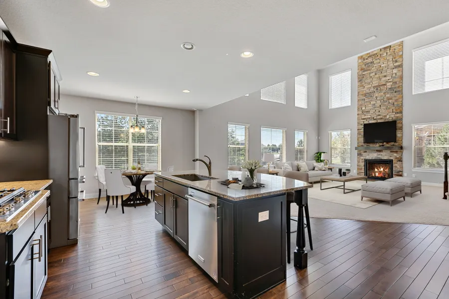 Welcome to your dream residence in the sought-after Parker home in the REATA NORTH neighborhood! This remarkable property boasts 5 spacious bedrooms and 4 full baths. With an unfinished basement providing ample potential for customization, this home truly presents a canvas for your personal touch. Nestled within a serene community, this home enjoys the privilege of being within walking distance of a refreshing pool, providing a resort-like atmosphere right at your doorstep. A perfect haven for relaxation and recreation! As you step inside, be prepared to be enchanted by the grandeur of this home. Two elegant staircases gracefully lead to the upper levels, creating an exquisite visual appeal that welcomes you and your guests. The heart of the home features a magnificent stone fireplace that soars up to vaulted 20-foot ceilings, creating a captivating focal point that sets the tone for coz...
