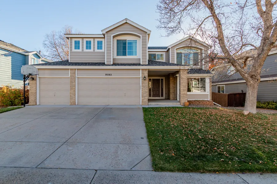 Experience the best of Highlands Ranch living at 9593 Painted Canyon Circle! This beautifully maintained home—with a 3-car garage (EV Charger Ready)—is tucked into the sought-after Westridge neighborhood and shines with natural light, inviting living spaces, and pride of ownership throughout. The open-concept kitchen offers sleek stainless appliances, generous counter space, a pantry, and easy flow into the comfortable family room—perfect for gatherings or relaxing after a long day. Upstairs, the serene primary suite features a contemporary ensuite bath and ample closet space. Three additional bedrooms are well-sized, providing flexibility for family, guest rooms, work-from-home space, or hobbies. The finished basement adds even more value with flexible bonus space and a convenient 3/4 bath. Step outside to a landscaped backyard designed for summer barbecues, play, or peaceful evenings under the Colorado sky. Residents of Highlands Ranch can enjoy top-tier amenities such as pools, fitness centers, spas, tennis courts, pickleball courts, etc. and unbeatable proximity to parks, trails, shopping, dining, and award-winning schools. Just minutes to Westridge Rec Center, Spring Gulch Trail, Redstone Park & Tennis Courts, and Rover’s Dog Park, with easy access to major highways. Move-in ready and waiting for you!