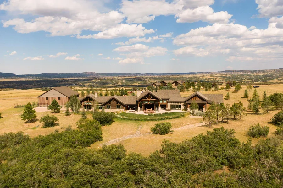 Using nature as its guide, this gorgeous custom ranch is nestled on 16 secluded acres with spectacular views of the mountains and wide-open vistas. Custom designed and built to the highest standards, the estate offers the peace, privacy and natural beauty of a Colorado mountain resort. The finest materials have gone into creating this rustic and luxurious retreat with reclaimed wood ceilings and accent walls, knotty alder cabinetry and mill work, gorgeous new reclaimed hardwood floors, travertine tile and dry stack granite stone work throughout. The sheer openness of the home is awe inspiring, with soaring wood beamed ceilings, vast expanses of floor to ceiling Lacantina tri-fold glass doors and 6,882 finished square of livable space, all on one level. Family and friends will enjoy grand entertaining spaces inside and out with an amazing indoor spa, entertainment parlor with wet bar and home theater and four seasons outdoor kitchen. An expansive travertine patio with built-in firepit envelops the back of the home and is the perfect outdoor space for guests to relax and take in the magnificent views. Another highlight is a 2880 sq. ft. indoor gymnasium with batting cages, weight area and basketball court. This multi-purpose building could also be used for vehicle storage or as a horse barn. Self-contained and zoned for horses and livestock, the property boasts a well, geothermal system, vegetable garden, greenhouse, chicken coop and heated indoor/outdoor dog kennels. Located in gated Bears Den, the estate is a tranquil escape from the city, yet you are just 3 miles from charming downtown Sedalia and 10 minutes from I-25.