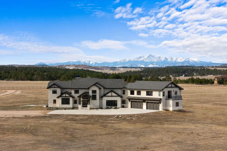 Commanding the most breathtaking Pikes Peak and mountain views, this custom home on 35 acres blends contemporary farmhouse design with Colorados natural beauty. Located in a gated community with paved roads up to the entrance, the property is ideal for equestrian use - offering open land for grazing with the opportunity to build your dream barn. Designed for comfort and accessibility, the two-story layout features main-floor living, and an elevator provides full ADA access between levels. Enjoy easy access to Colorado Springs and Castle Rock, both within 30 minutes, Denver just an hour away, and Monument only about 15 minutes from the property.