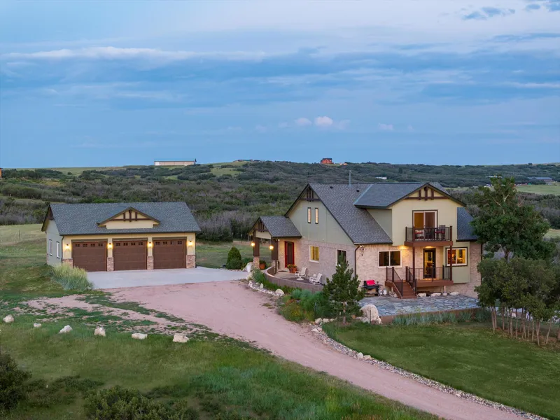With space, serenity, and stunning scenery the 360-degree views from this 35-acre estate are rare in highly sought after Douglas County. Perched on the highest knoll, the thoughtfully designed 4-bedroom, 5-bathroom home blends harmoniously into the natural landscape. From the moment you arrive at the gated entry you pause and take in the natural beauty. Just minutes from Castlewood Canyon and 8 miles from downtown Castle Rocks dining, shopping, and conveniences-yet worlds away in peace and privacy. Enjoy horse keeping with a high-quality center-aisle steel barn with four stalls, hay storage and tack room. Several pastures are fenced and cross fenced. Ride without leaving your property. 3-car and 2-car garage for all your toys. Enjoy breathtaking sunsets and panoramic vistas of the entire Front Range from all the three expansive decks. Designed to take full advantage of its stunning su...