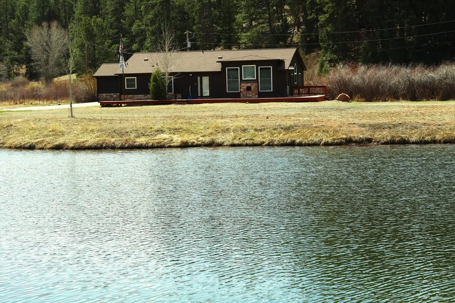 PRICE REDUCED $80,000 A SUPER MOTIVATED SELLER HURRY ON THIS ONE! Best buy in this gated fishing and hunting community Located in the highly sought after North Rainbow Falls Park 30 minutes north of Woodland Park, one hour to Colorado Springs and 1.5 hours to Denver. Beautiful 1 level 1968 square feet, three bedroom 2 bath, 4 car garage home, bordering a trout pond and has Trout Creek flowing through the land. Multiple ponds for fishing. Access to the 1,000,000 acre Pike National Forest for hiking, hunting and horseback riding. Several miles of creek and beaver ponds for brook trout fishing. Year round access and behind locked gate for secuity and privacy.