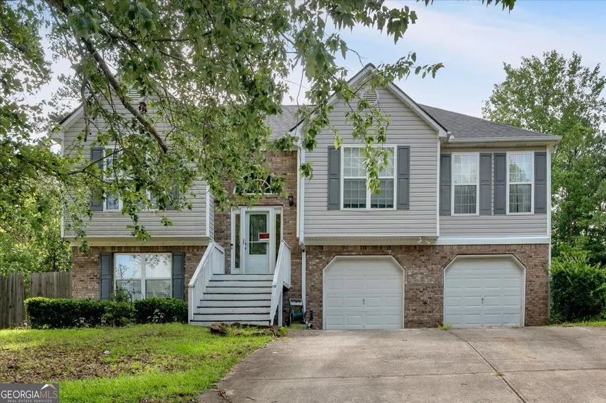 Spacious Split-Level Home on 1.2 Acres | Douglasville, GA. Tucked away on a serene 1.2-acre corner lot, this split-level gem offers space, mature trees, and endless potential. Nestled on a hill, you'll love the sense of seclusion while still being just 10-15 minutes from Douglasville's top dining and shopping. Step inside to a welcoming living and dining room combo with soaring vaulted ceilings, laminate flooring, and a cozy gas-starter fireplace. The dining area easily fits a large table, perfect for entertaining. The oak cabinet kitchen features a bar, a breakfast nook, and a charming arched pass-through window overlooking the main living space-ideal for keeping connected. Down the hall, two secondary bedrooms offer floor-length windows and plenty of natural light. The spacious primary suite boasts a vaulted ceiling, a walk-in closet, and an ensuite with double vanities, a garden tub, and a separate shower under vaulted ceilings. Downstairs, discover a large bonus room, a full bath, and an additional bedroom-perfect for guests, a home office, or a recreation space. The two-car garage is conveniently located on this level. Enjoy a flat backyard, ideal for play, pets, or future outdoor living. With a brand-new HVAC system being installed the week of June 23rd, this home is ready for your personal touch. Great bones, beautiful lot, and room to grow-bring your vision and make it your own!