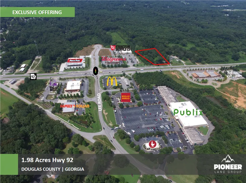 The 1.98 acres is in Douglas County in the Highway 92 Village Overlay District near Tractor Supply, RaceTrac and Walgreens.