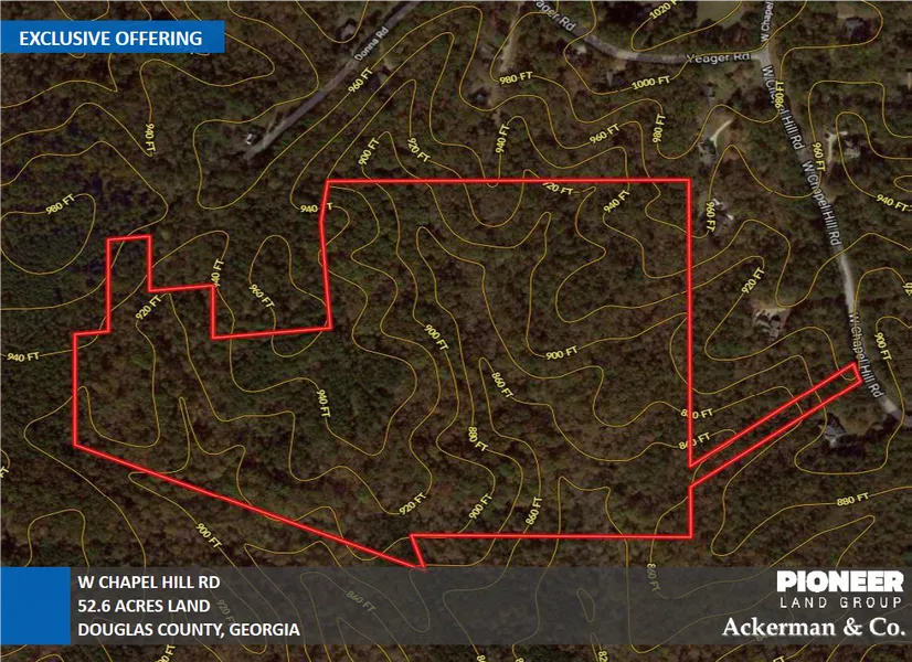 The property is 52.6 acres planned for single family detached homes on W. Chapel Hill Road in Douglas County, GA.