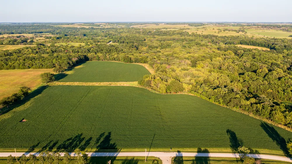 You couldn't draw up a more perfect build site close to Lawrence! Located 1.5 miles off blacktop in western Douglas County, Kansas sits this dreamy 30 +/- acres. This property has a combination of beautiful farmland (planted in soybeans), big hardwood oak & hickory timber, grassy draws, and is 100% loaded with wildlife. A beautiful flat build site sits on the north end of the property, with access to rural water and electricity right at the road. Your backyard adjoins over 1,200 acres of Clinton Lakes Wildlife Management Area and is just a few hundred yards from the Rock Creek arm of the lake. This property will never have any neighbors behind you, making it a magical place to build your forever home. Several bucks over 170"+ have been harvested on neighboring properties, and the turkey population is thriving in the region. You will see wildlife daily on this property. Call today for you...