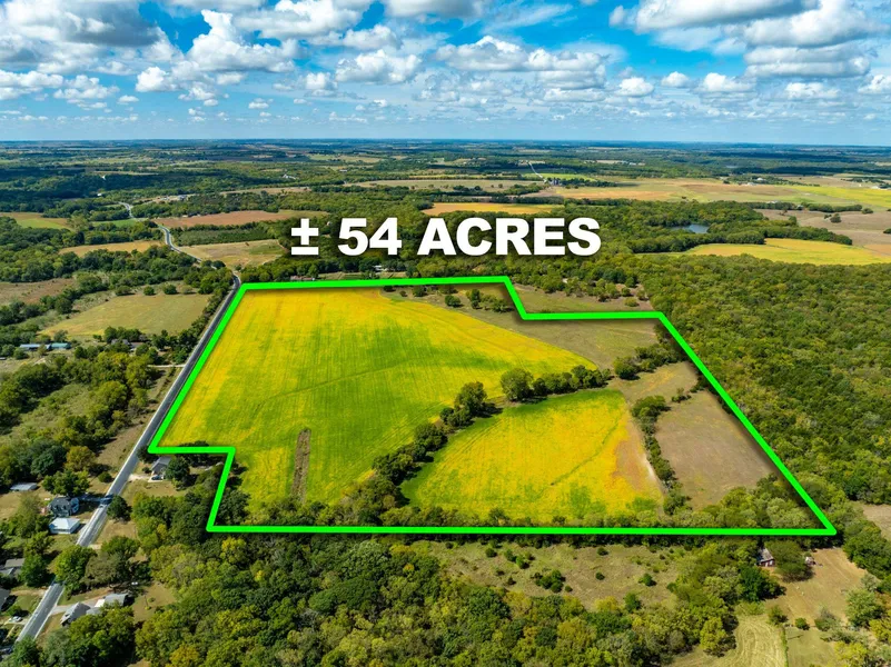 Rare opportunity! 54 acresseller will divide with acceptable offer into two 20+ acre parcels. One includes a home, the other is a prime build site. Live, build, or both! Located southwest of Lawrence, it boasts a hard-surfaced road on one side and gravel on another, offering easy access.