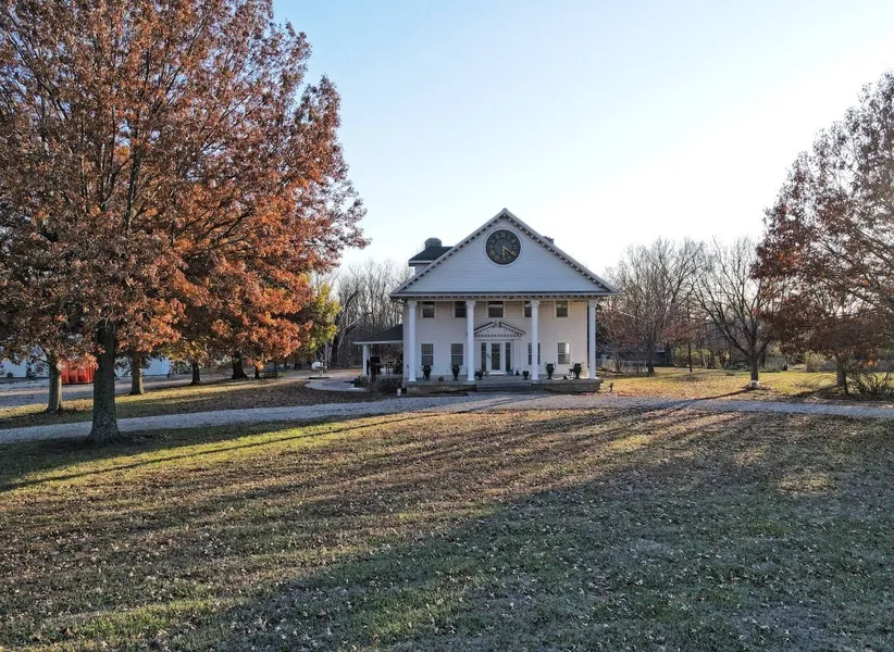 The famous "Clock House" located about halfway between Lawrence, KS and Topeka, KS along US Highway 40 West and overlooking the California / Oregon Trail. This unique real estate offering has mesmerized travelers along Interstate-70 and it's looking for its next owner! The home boasts more than five acres of property and includes the famous "Clock House" in addition to a massive 60' x 100' insulated and heated, steel-framed metal building and a detached garage/shop. The home commands your attention as you walk up to the expansive front porch with it's towering clock. The clock was saved from a building in Nebraska and moved to its current location where it stands as a sentinel along I-70 between Topeka and Lawrence. The house is well appointed with beautiful lighting fixtures, a passion of the home's antique obsessed curator. A large, chef's kitchen is the cornerstone of the main floor. The kitchen features high-end quality Viking appliances, tons of counterspace, ample cabinets and a layout designed for entertaining. Three bedrooms on the second floor plus one primary bathroom. The third floor attic space is where the clock is housed. This space is currently used for storage overflow but is well situated to be a finished space, adding additional living area to the property. The unfinished basement includes an additional 1,522 sq ft of space. There are two access points, an interior access off the kitchen as well as a cellar door style entrance that goes to the outside. The basement area includes a third bathroom with stool, sink and shower. This is an ideal space for an interior workshop or a major bonus for additional storage. Historical NOTES: - The original structure was thought to have been built in 1860 (pre-civil war) and many impressive renovations have been made since then. - The historic California & Oregon Trail runs ran right in front of the Clock House - Historic Lecompton, KS and the Kansas Territorial Capital are just up the road (5 miles) Acreage:5.02 +/- acres | Total Living Area: 2,728 sq ft finished above grade + 1,522 sq ft unfinished basement + 1,100 sq ft unfinished walk-up attic | Bedrooms:3 | Bathrooms: 3 (1 full - 2nd floor | 1/2 - main floor | 3/4 - basement) | Improvements & Buildings: 60' x 100' insulated, steel-frame metal building with overhead propane heat | 44' x 32' garage / shop building Area Info: 10 miles to Lawrence, KS | 13 miles to Topeka, KS | 50 minutes drive to Kansas City International Airport