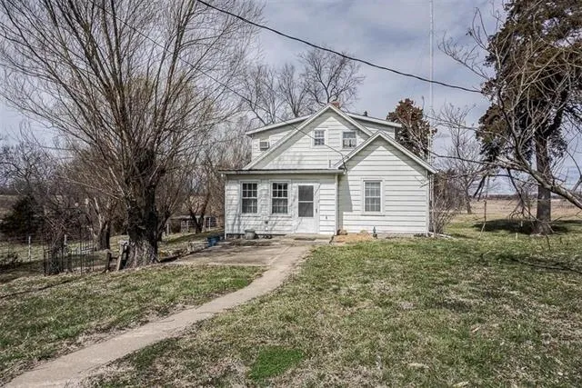 Reduced Acreage/Price! House & outbuildings on 27.3 acres of great farmland off BLACKTOP! Easy access to hwys. Close prox to Baldwin, Lawrence and Ottawa. House needs updating, but sits on rolling pastureland w/winding creek & trees. Selling "AS IS." Outbuilding/workshop has 1/2 bath w/shower for easy clean-up. Large pole barn for tractors & machinery. Main-flr MBR, laundry & 1/2 bath. Wood-burning insert w/blower. Vinyl siding, thermal wind. Comp roof repl & HVAC about 10 yrs ago. All dimensions are approximate.