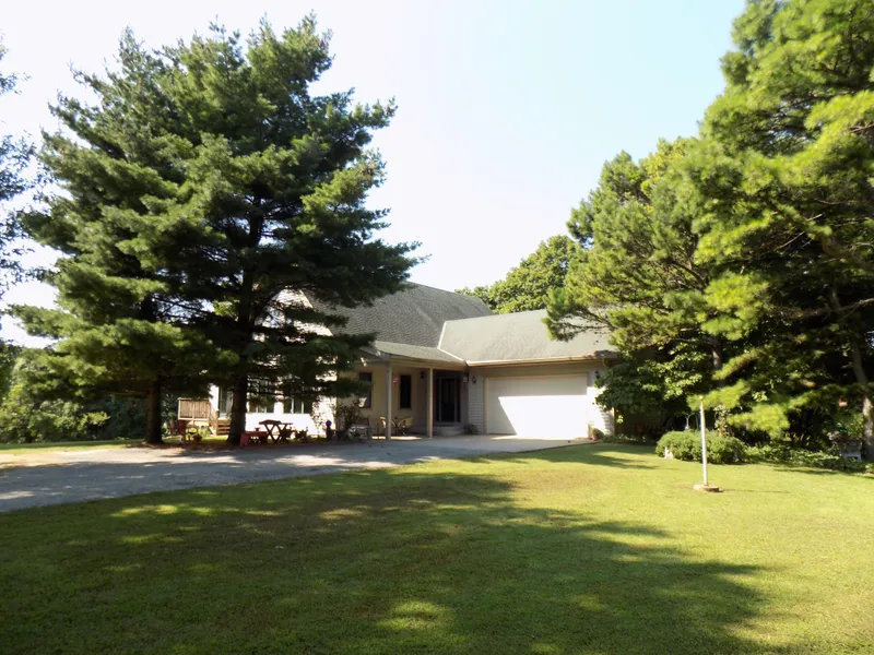 Amazing New Price! What a Beautiful Private Country setting for this Custom Built (owner/builder) 1 1/2 story home with 3,882 sqft. on 14 acres. The home is nestled in a heavily wooded surrounding, just a few miles south of Lawrence, Kansas. Home features 3 BR, 4 full baths & half bath, full finished walkout basement, large living room with 3/4" natural wood flooring, large ceiling to floor windows & expanded crown molding throughout main floor, Master bedroom has a private deck, his & her baths (one with Jacuzzi tub), & walk-in closet.
