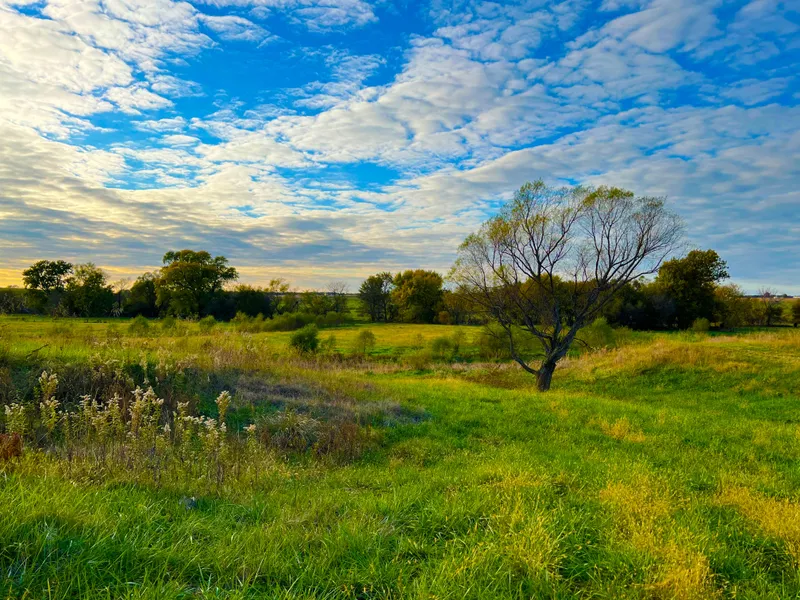 Character abounds on this well maintained 21 acre buildable site! Existing oxbow on the property attracts wildlife year-round, and theres a natural elevated build site with incredible views. If you are looking for privacy and peacefulness, look no further! The property is fenced on three sides and driveway access is already in place. Rural water available. Wellsville school district. Located just 1.5 miles north of 56 highway, 6 minutes from Baldwin City and 10 minutes from Wellsville.