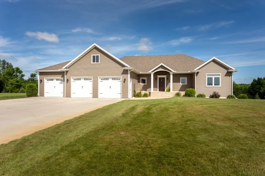 Immaculate! Exceptional quality! You will see the attention to detail throughout as these homeowners would strive for nothing less than perfection! Beautiful custom, soft-close cabinets with pullout drawers. Granite counter tops in kitchen and center island, stainless appliances. Spacious open floor plan with 9' ceilings on the main level, custom crown molding, grouted vinyl tile flooring on main level. Maintenance-free deck overlooking the large, scenic backyard. Owner's suite has walk-in tiled shower and walk-in closet. Warm up to the two sided fireplace in the large lower level family room. Walk-out from lower level to the backyard patio. Efficient natural gas and electric dual-heat. In-floor heat in lower level and garage. Large 40' finished garage with epoxy floor, large doors, and floor drain. Natural gas line to the backyard grill. Lawn irrigation system, concrete driveway. Locate...