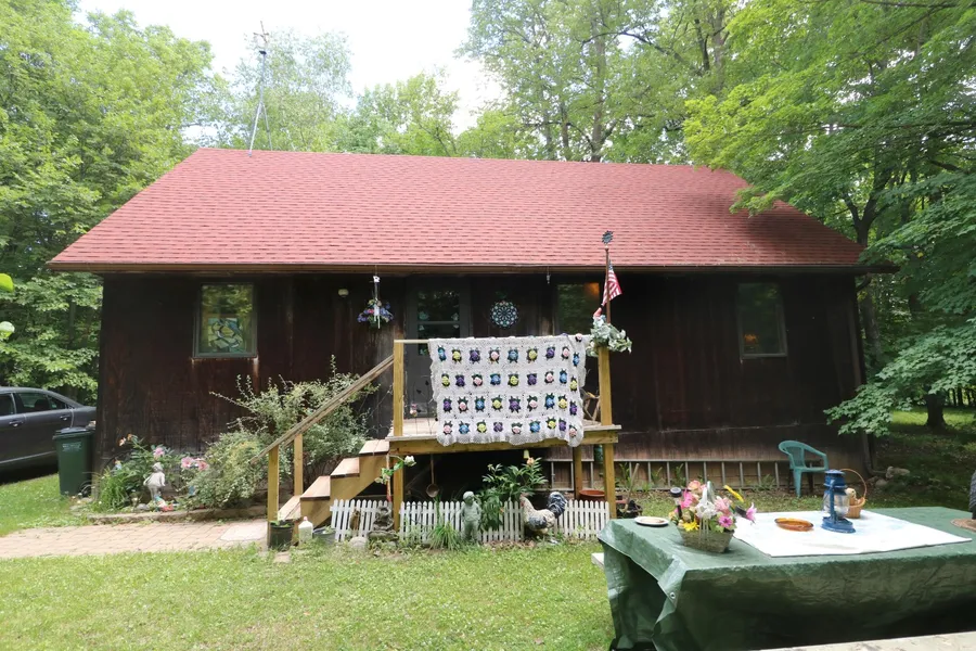 Attention to the DIY Buyers! The wooded 1.69 acre setting creates the private location for this "cabin in the woods". The house built in 1982, has 4 bedrooms, 2 baths and has totally been heated by a wood stove. The ductwork is in place for a FA Furnace and space exists in the utility room for it. Currently the kitchen is in the basement but could be placed upstairs; electric outlets and some plumbing in place. The detached garage built in 2001 has been used as a shop building. Bring your ideas and tools to create and complete your vision for this "diamond in the rough!"