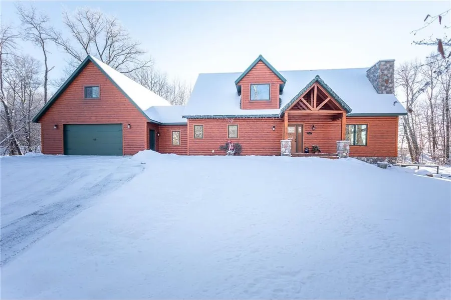 Very nice 4 Bedroom, 5 Bath, one and a half story walk-out log home. The main floor has a bright open floor plan. Gas fieldstone fireplace. Hardwood floors, the kitchen features an island area and pull out pantry drawers and under cabinet lighting. All kitchen appliances are included. Primary Bedroom has a 3/4 bath and a walk-in closet. Other features include a great screened porch, a half bath and main floor laundry. Two bedrooms and a jack and jill bathroom upstairs. There is also a great sitting area or office loft overlooking the main floor. In the lower level is an awesome family room with a large kitchenette-bar area. There is a bonus room over the 4 car garage which is insulated and has in-floor heat. There is also another 3/4 bathroom in the garage. This property has everything you've been looking for and hoping to find. Here it is!!! 1.52 acres, nestled in the woods......please ...