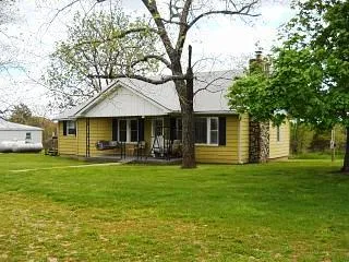 Pleasant 2 bedroom steel-sided ranch on 1.3 country acres. 13x16 living room with a wood-burning, native stone fireplace and insert. Separate dining room, 9x16 kitchen, 8x24 enclosed back porch. Laminate floors in the living room, dining room, and kitchen. Arched doorways. Built-in storage cabinets. Thermal tilt-out replacement windows. Covered front porch, nice 8x16 deck in back. Excellent metal 30x40 detached 2 car garage/shop with concrete floor. 18x24 storage shed. Good root cellar. Rough 32x45 storage building that used to be a country store.