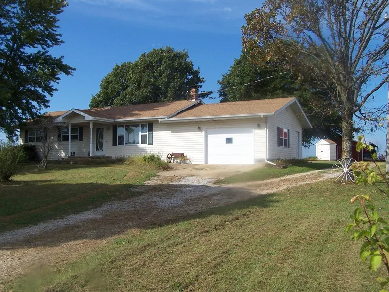 Brief Description: LOOK HERE!....A very Nice Updated Country Home nestled on 10 acres, m/l. , (OPEN) 3 bedroom, 2 bath, 3 Garages . Central Heat & Air. Brick Fireplace with wood insert. This Ranch is well-maintained and has AWESOME VIEWS. A well-built , 4 stall Horse Barn, A newer built Machine Shed / Garage / with Chicken Barn in the Rear. A very good set-up. Fenced and Cross Fenced, smooth wire, NO ZONING AND/OR NO PERMITS NEEDED HERE......HIGH SPEED INTERNET. Priced to SELL Quickly.......$149,900